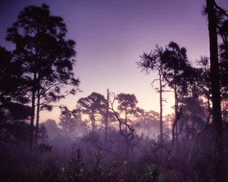 Dawn at the Dyceranda Preserve; Dating back 120,000 years ago, the Atlantic Coastal Ridge was formed as an ancient beach sand dune when the climate was warmer than today's and ocean levels were much higher. Then 70,000 years ago, a great period of glaciation occurred. Ice caps covered half of North America and a vast desert-like ecosystem formed across the entire southern half of the United States. 17,000 years ago, the climate began to warm and ocean levels rose for the next 10,000 years. Much of the desert-like ecosystem in Florida disappeared, except on ancient beach dunes like the Atlantic Coastal Ridge and the even older Lake Wales Ridge. Here, the last remnants of this extremely diverse "scrub" ecosystem continued to thrive due to the dry sandy soil, and is today Florida's oldest, most biologically diverse, surviving terrestrial habitat. It is home to over 42 plant and animal species that can survive here and nowhere else. The Dyceranda Scrub Preserve, named after a plant species that exists only within a few square mile of this ridge, has been purchase and protected by the Brevard County Environmentally Endangered Lands Program.