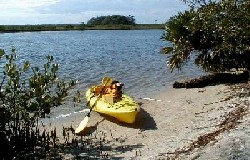 Shipyard Island Canoe TrailAt the north end of the seashore is the Shipyard Island designated canoe trail with designated primative campsites on some of the islands in the area. A permit and reservations are required for island camping (call 386-428-3384, extension 10). To paddle the Shipyard Island Canoe Trail, take either US-1 or I-95 to SR-44 (exit 84 from I-95) in New Smyrna Beach and go east until you come to SR-A1A and go south until you reach Cape Canaveral Seashore. You can put in at the boat dock, which is at the first parking lot on your right after entering the park, (designated parking only for vehicles with boat trailers), and then park your vehicle across the street in parking lot #1. Photo by Rose Sroda. |
