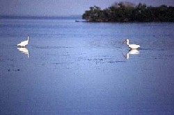 From US 1 south, the current slows the creek widens, and the habitat is definitely becoming salt marsh. This is a birdwatchers paradise! White Pelicans, Egrets, Herons, and other waterbirds are in abundance. This is one of the last truly pristine salt marshes left in the entire Indian River Lagoon system unaltered by man. This is a very relaxing paddle and a chance to experience one of the lagoon system's most unique habitats. Use your browser's Back button to take you back to your exact position on the table. Photo by Kevin Shufelt. |