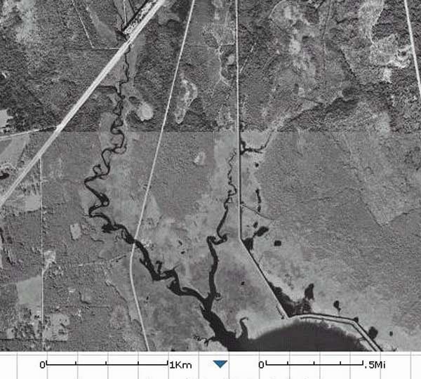 In this photo the US-1 Launch site is near the upper left hand corner while the Indian River lagoon is near the lower right.